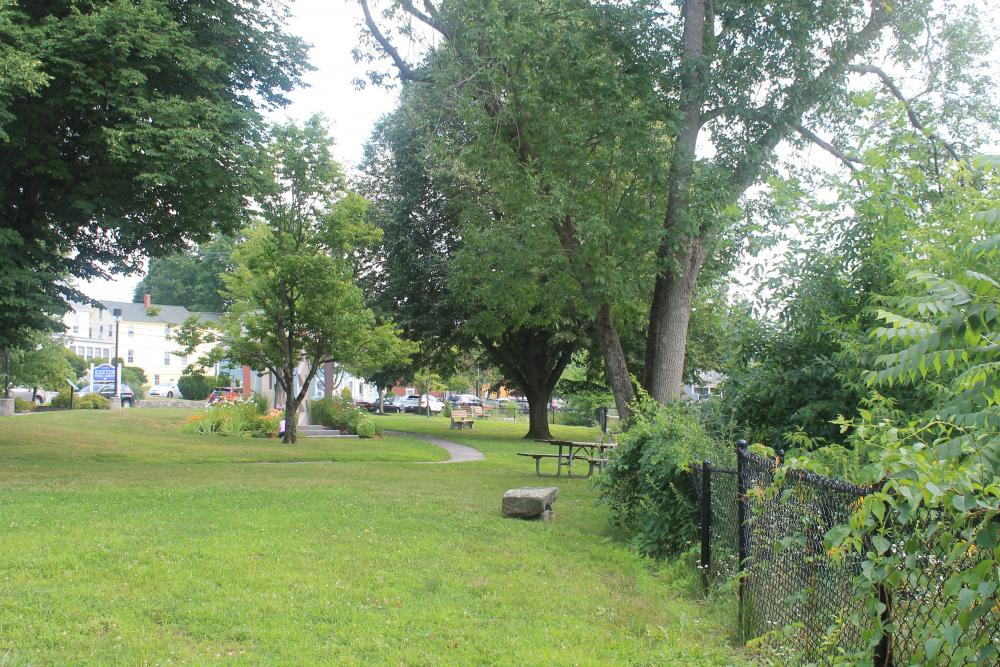 Founder's Park was created in 1988 to commemorate the 350th anniversary of the town. People can be seen eating lunch by the river during summer months.