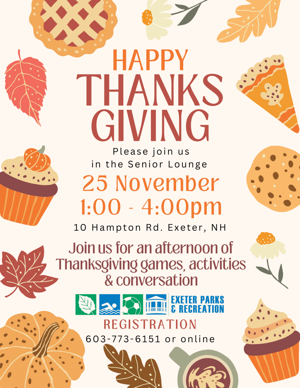 Join us in the Senior Lounge on November 25 from 1:00-4:00pm for an afternoon of games & activities to celebrate the Month of Thanks! Enjoy classic holiday videos, music and hot mulled cider while EPRD staff lead you through activities like GOBBLE Bingo, Truth or Fowl and Paint by Numbers!
